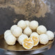 A truffle with a fusion of flavours and textures. The outer shell made of creamy white chocolate, the inside a smooth ganache with the taste of tangy raspberries and tropical coconut.